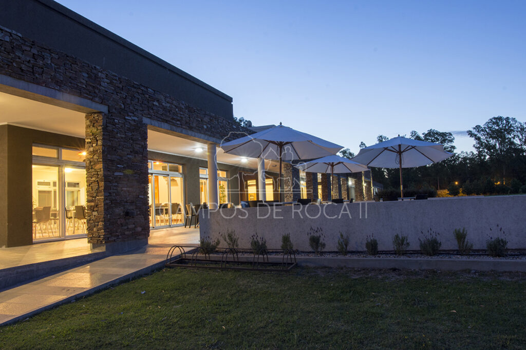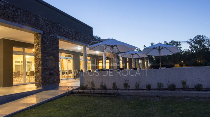 El Club House cuenta con distintas salas de uso común: Living Room, Sala de lectura, Sala de juegos para adultos, Sala para niños, Restaurant “El Calden”, Salón de usos múltiples, Gimnasio . 2 Canchas de fútbol 11, 4 canchas de tenis construidas de polvo de ladrillos, 2 canchas de paddle, playón multideportes para la práctica de básquet, cancha de vóley sobre césped, pileta exterior y un área de juegos infantiles. Dentro de sus 1600 mts2, encontramos “Campos SPA” con: Sala de Masajes, Ducha Escocesa, Baño Turco, Sauna Seco, Sala de Rélax, Jacuzzi y Piscina in/out.